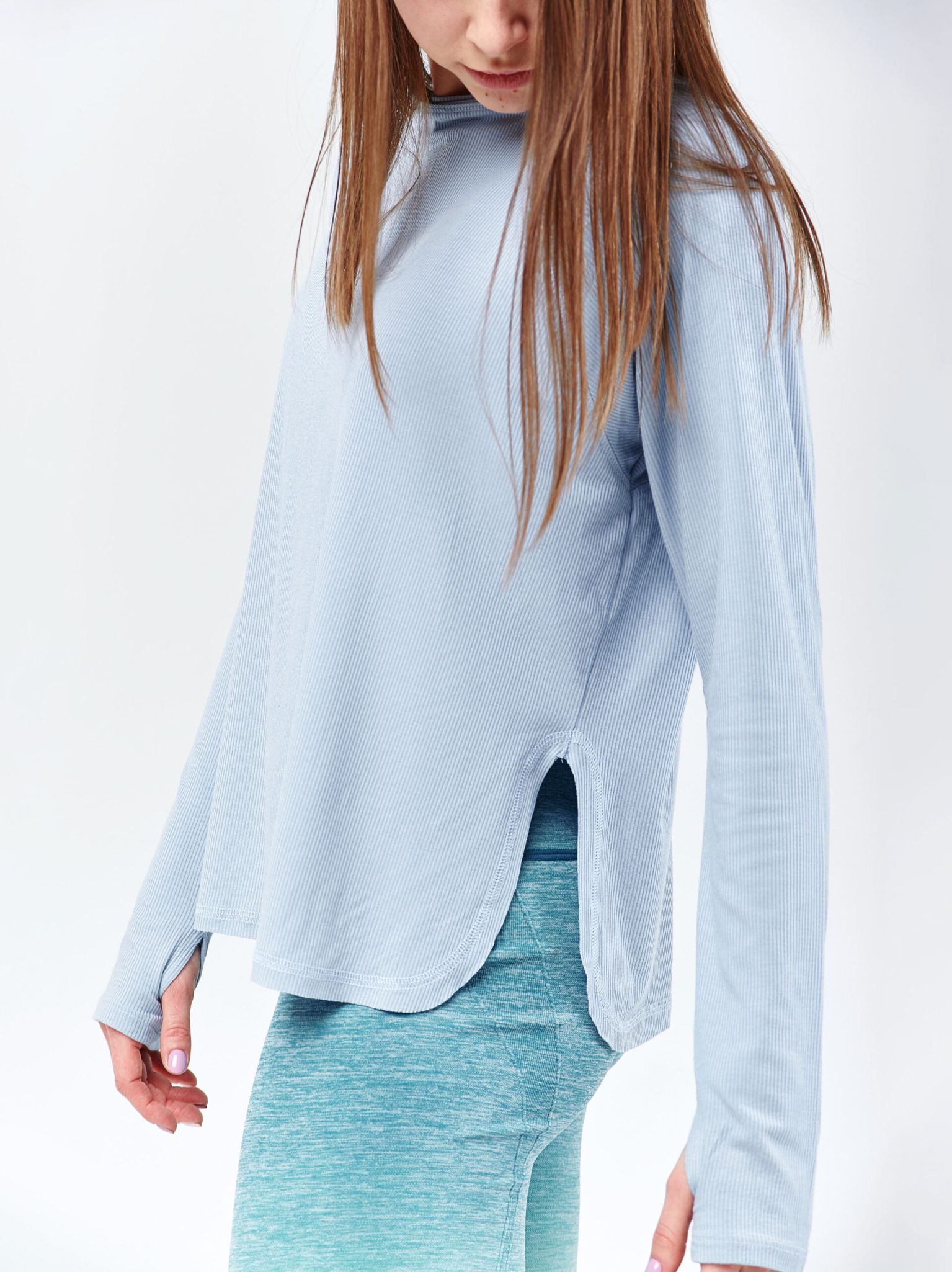 Blue Basic Athletic Long-Sleeved Shirt